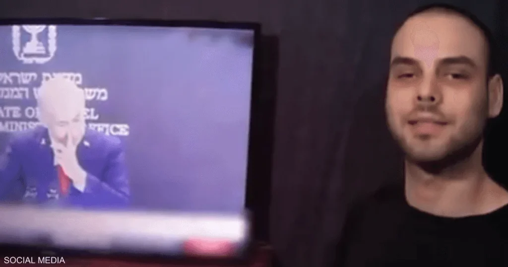 ظهر آلون أوهل في المقطع وهو يرتدي قميصاً أسوداً بينما يشاهد خطاباً لرئيس الوزراء الإسرائيلي بنيامين نتنياهو يعرض فيه بحث الحكومة عن حلول لإطلاق الرهائن.