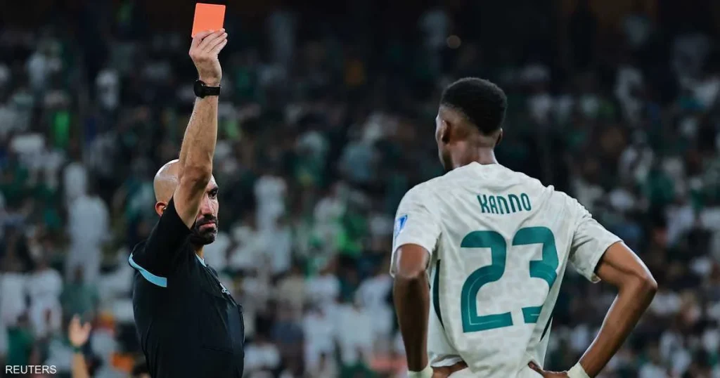 كما أثارت لفتة طرد اللاعب محمد كنو من المنتخب السعودي جدلاً بعد إنذاره مرتين في ثوانٍ معدودة، الأولى لتعطيل اللعب والثانية للاعتراض، وهو ما أُثار انتقادات متتابعة.