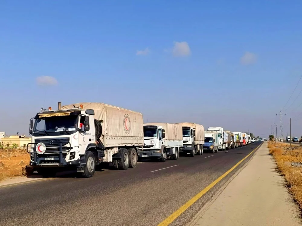 وتداول ناشطون مقطعاً مصوراً يظهر دخول شاحنات مساعدات إلى المدينة، متسائلين عن وجهتها وسبب اختفائها.