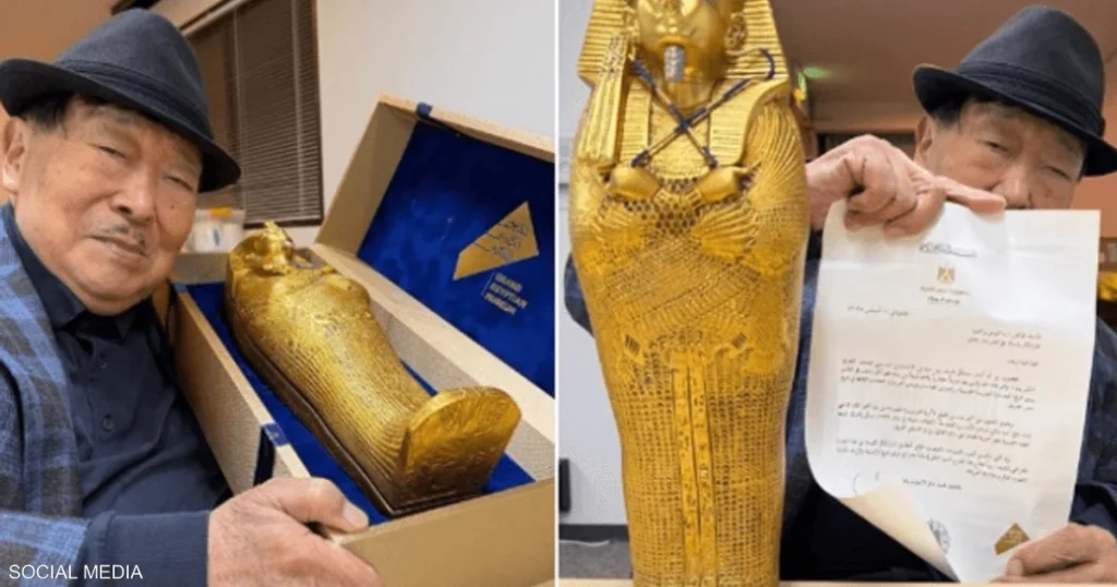 وأثارت دعوته انتباه العالم عندما شاركها مع متابعيه عبر منصة “إكس” في تابوت ذهبي صغير يحمل لمسات فرعونية دقيقة.