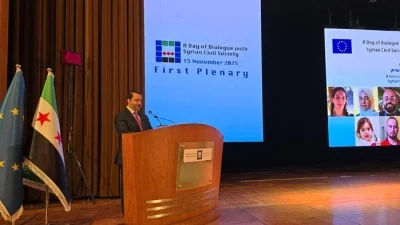 وقال الوزير الشيباني في كلمة افتتاح الفعالية: “نطلق اليوم الشراكة المتينة مع المجتمع المدني وشركائنا في الاتحاد الأوروبي”، وفق ما نقلت وكالة “سانا”.