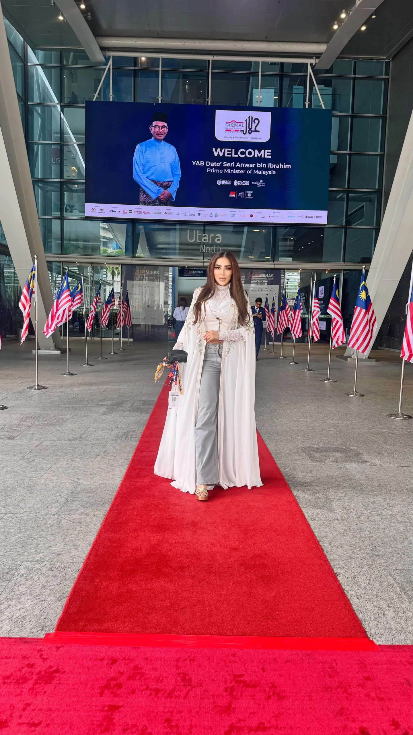 «فخورة بمشاركتي اليوم وللسنة الثانية على التوالي في ملكة ماليزيا. هذه التجربة ليست مجرد عرض أزياء… بل لقاء بين الأناقة المحتشمة، الرقي العالمي، وقوة المرأة الملهمة. ومع كل مشاركة من MG Maison نخطو خطوة أعمق نحو تمكين النساء وصناعة مستقبل مليء بالفخر والجمال.»