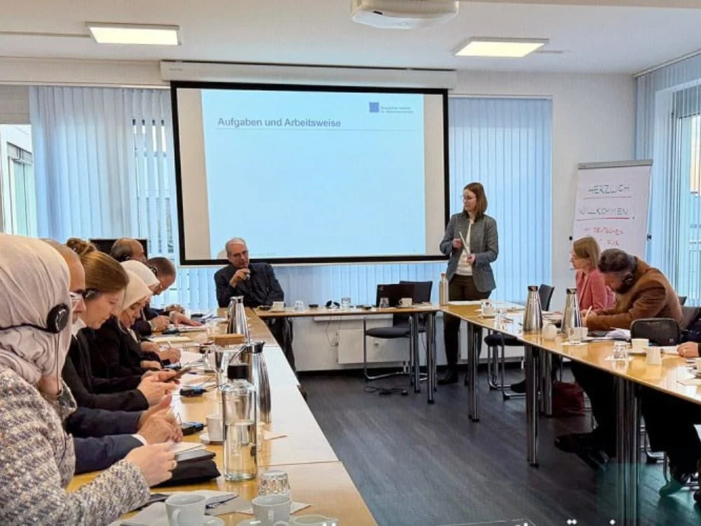 ضم الوفد عدداً من أعضاء المجلس الأعلى للقضاء ورؤساء الأقسام القضائية في وزارة العدل، واستمع إلى عرض موسع قدّمه خبراء المعهد حول آليات عمل المؤسسات الحقوقية المستقلة في ألمانيا، ودورها في الرصد والتوثيق وإعداد الدراسات القانونية.
