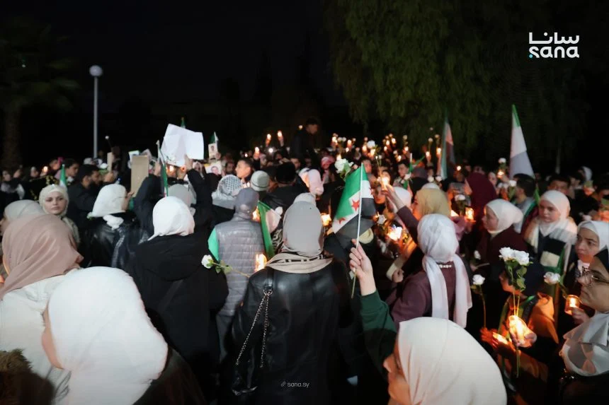 انطلق مسير طلابي بالشموع والورود يحمل عنوان “في قلوبنا” من مبنى المدرجات بكلية الحقوق في جامعة دمشق، وشارك فيه نحو 600 طالب وطالبة، تعبيراً عن التضامن مع عائلات المفقودين ودعماً لهم في رحلتهم المؤلمة بحثاً عن الحقيقة.