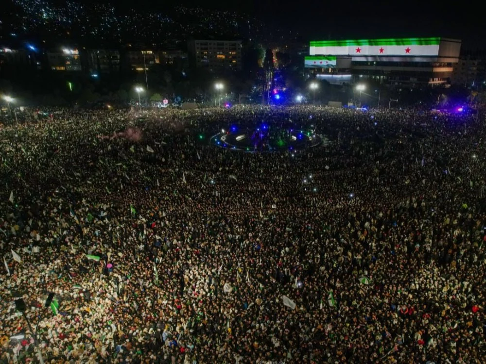 وكانت ساحة الأمويين قد شهدت توافد حشود جماهيرية ضخمة للاحتفال بالذكرى الأولى للتحرير، حيث تعرض بعض المحتفلين لحالات اختناق نتيجة الازدحام الشديد والألعاب النارية الكثيفة.