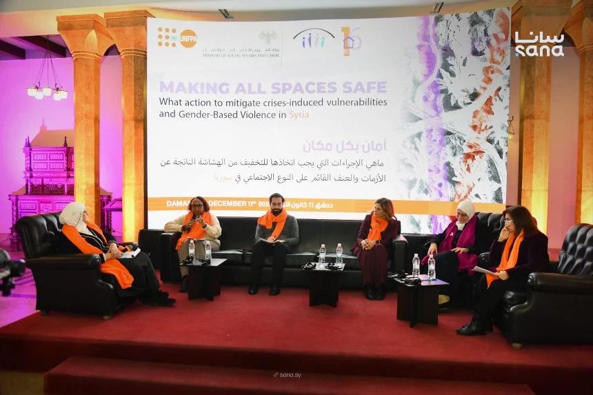 أقامت وزارة الشؤون الاجتماعية والعمل بالتعاون مع صندوق الأمم المتحدة للسكان فعاليات حملة 16 يوماً من النشاط لمناهضة العنف القائم على النوع الاجتماعي – أمان بكل مكان خلال حفل أُقيم في قاعة رضا سعيد للمؤتمرات بجامعة دمشق.