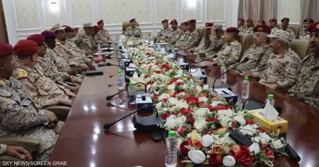 عقد اجتماع عسكري استثنائي في مدينة عدن برئاسة وزير الدفاع اليمني محسن محمد الداعري، وتركز على المستجدات في محافظتي حضرموت والمهرة، مع التأكيد على تحمل المسؤولية العالية لتجنب أي تداعيات خطيرة وسط تحذير من حدوث توتر بين مكونات الشرعية مهما كانت الظروف.