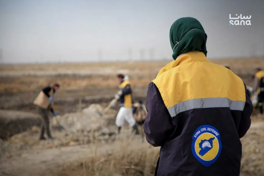 بدأت الفرق المختصة بالدفاع المدني بتنفيذ عمليات المسح الأولي بحثاً عن رفات الشهداء.