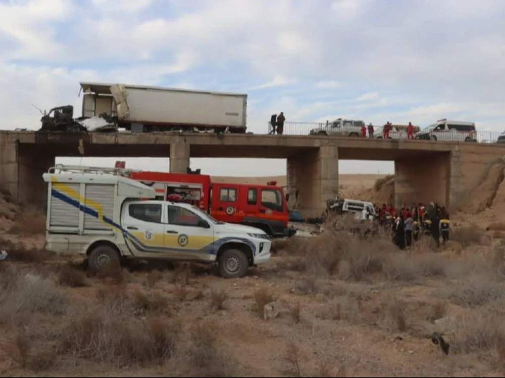 توفي خمسة أشخاص وأصيب اثنان آخران، الإثنين 12 كانون الثاني، نتيجة حادث تصادم بين شاحنتين على طريق دير الزور – دمشق عند جسر المالحة.