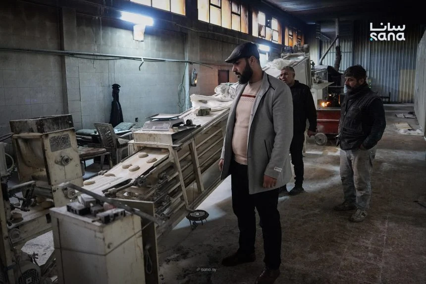 تفقد مدير منطقة الغاب فايز لطوف اليوم الأحد واقع العمل في الفرن الآلي في مدينة السقيلبية بريف حماة الغربي أثناء جولة ميدانية.