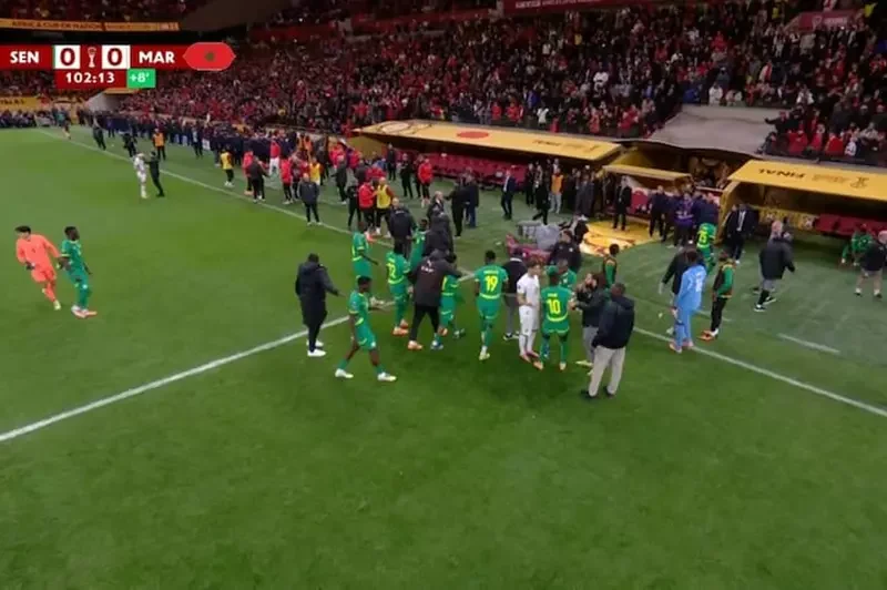 أثار القرار غضب جماهير السنغال، فاندفعوا نحو أرض الملعب احتجاجًا على القرار.