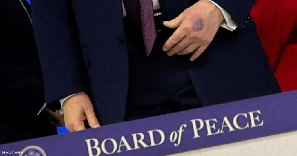 وقالت المتحدثة باسم البيت الأبيض كارولاين ليفيت إن الكدمة نتجت عن اصطدام اليد بالطاولة.