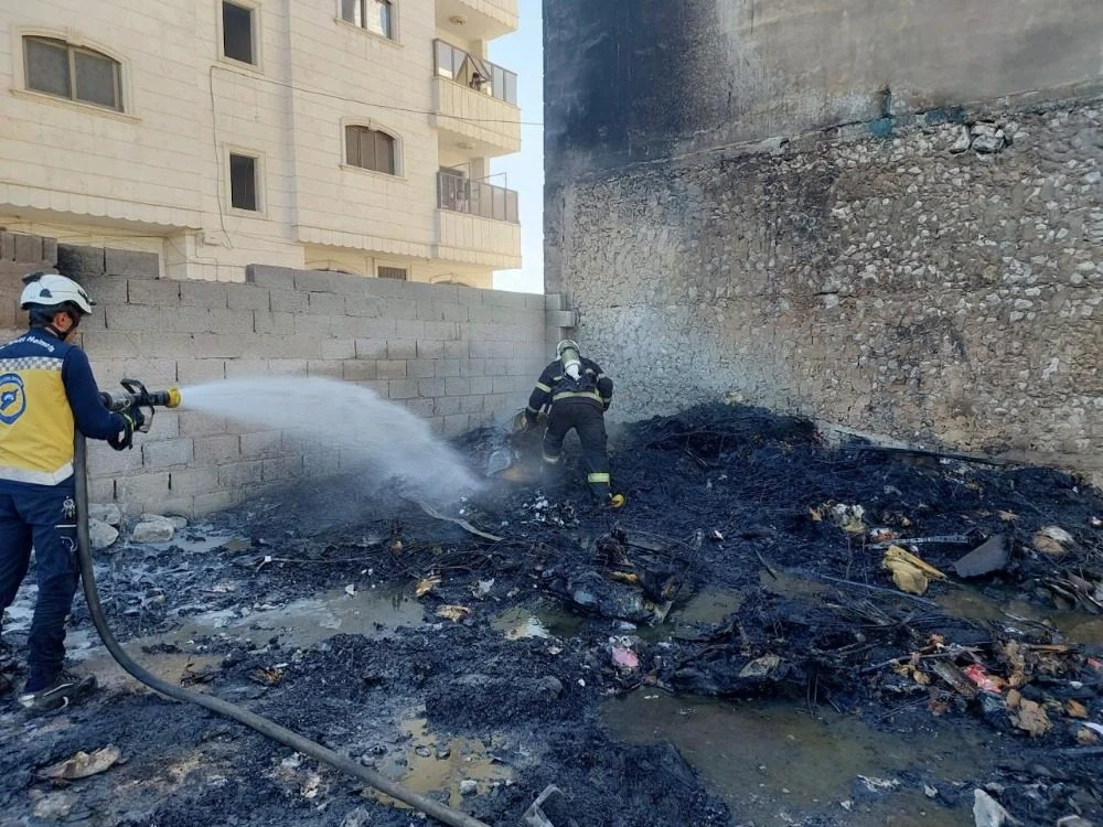 أخمدت فرق الدفاع المدني الحريق وانتشلت جثمان امرأة، وقدمت الإسعافات الأولية لثلاث حالات اختناق في المكان.