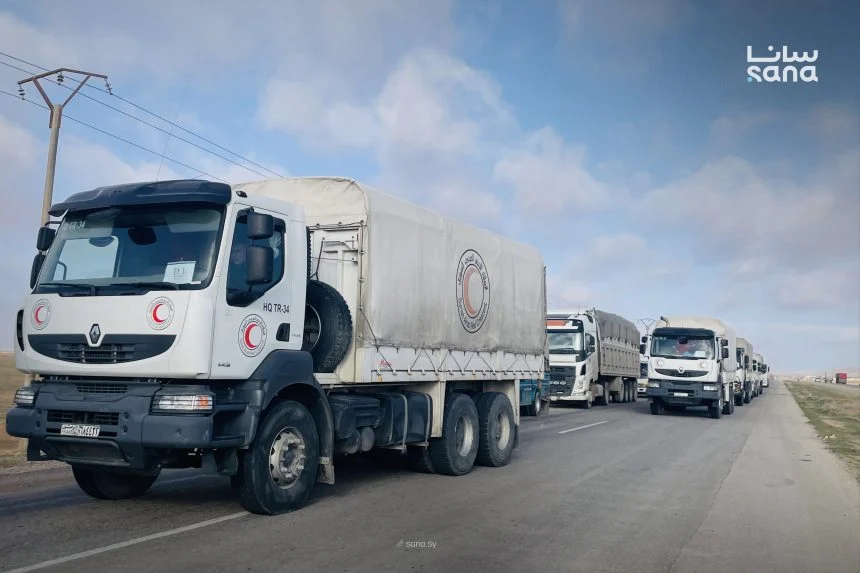 وصلت قافلة مساعدات إنسانية إلى محافظة السويداء اليوم الأربعاء، وتضم 31 شاحنة محملة بـ503 أطنان من مادة الطحين والمواد الغذائية وكميات من المازوت، وذلك لدعم الأفران وتوفير الاحتياجات الأساسية، بالتنسيق بين المحافظة ومنظمة الهلال الأحمر العربي السوري وبإشراف ودعم من برنامج الغذاء العالمي.