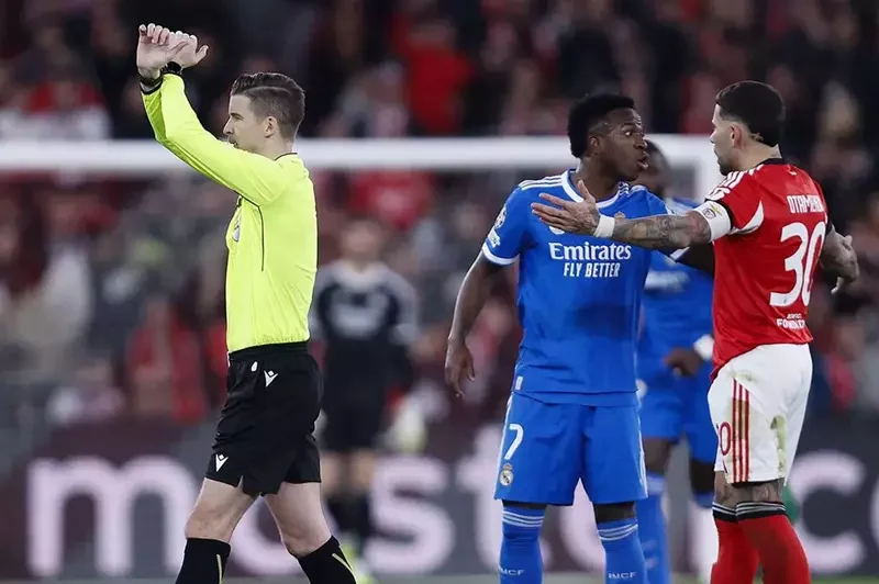 سيطر ريال مدريد على المباراة وفاز بهدف نظيف أمام بنفيكا في ذهاب الملحق المؤهل لدور الـ16 من دوري أبطال أوروبا، حين سجل فينيسيوس جونيور الهدف في الدقيقة 50 بعدما تقدم بشكوى من تعرّضه للتمييز.