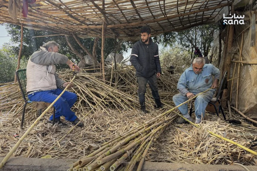 يعمل الحرفيان إبراهيم داؤد (أبو سليمان) وغسان الشعار في حرفة القصب بريف طرطوس، وهي حرفة تقليدية تعتمد على اليد العاملة وأدوات بسيطة، اختاراها كمصدر رزق مستدام في ظل الأوضاع الاقتصادية التي تعيشها البلاد، وبدآ منذ 15 عاماً في صناعة القصب من الموارد المتاحة في البيئة المحيطة فحوّلا القصب إلى تحف جميلة وأدوات تستخدم في الحياة اليومية.