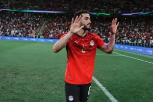 وسجل محمود تريزيجيه الهدف الثاني لصالح الفراعنة أمام الأخضر السعودي، في الدقيقة 16، من ضربة رأسية بعد استقبال عرضية متقنة من محمد هاني.