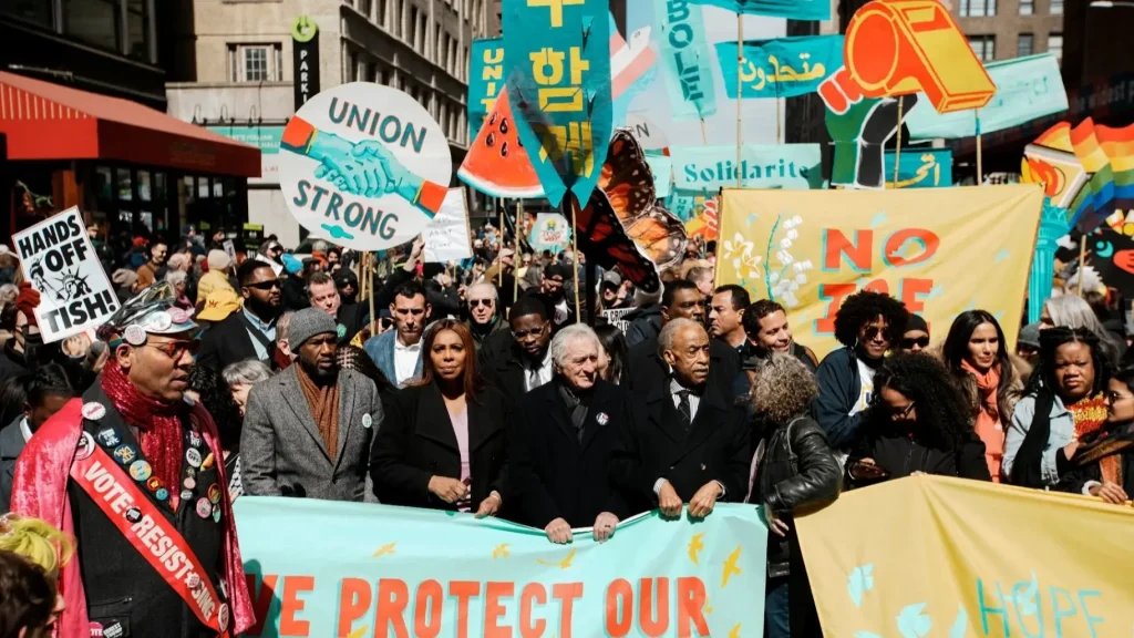 شهدت مسيرات شعبية ضخمة تقدر بملايين المشاركين يوم السبت، احتجاجاً على الحرب الدائرة في إيران والخطوات التي اتخذها الرئيس الأميركي دونالد ترامب.
