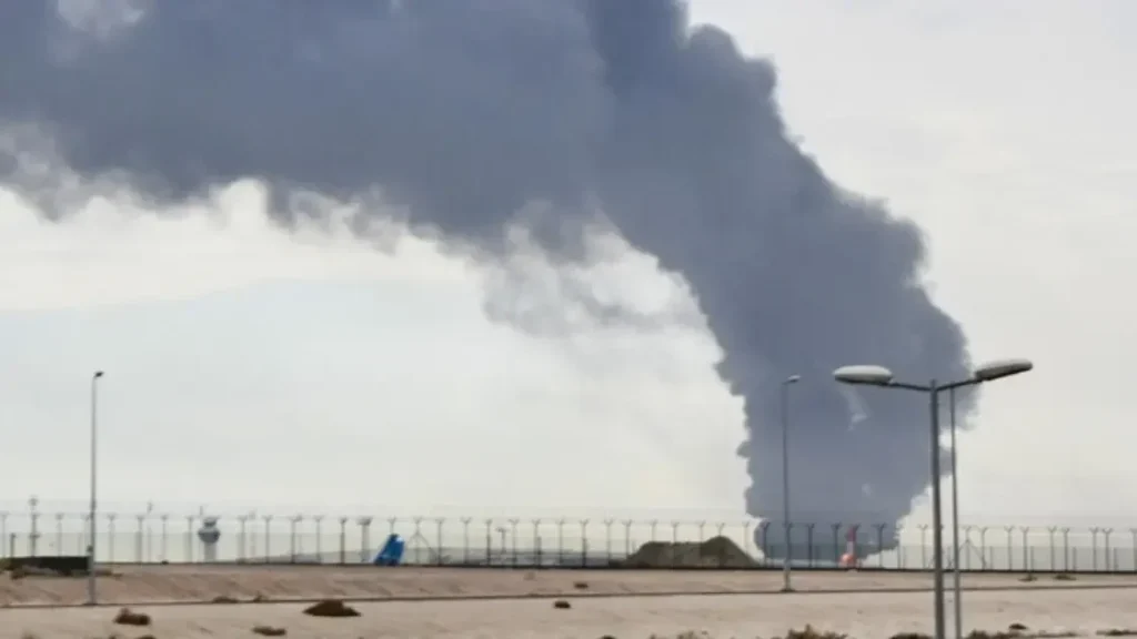 أظهرت صور متداولة اندلاع حريق في خزانات الوقود بعد الهجوم، مع ظهور أعمدة دخان سوداء كثيفة تتصاعد في السماء، بينما لم ترد أنباء عن وقوع إصابات حتى الآن وتُشير السلطات إلى أن حجم التأثير على عمليات المطار لم يتضح بعد.