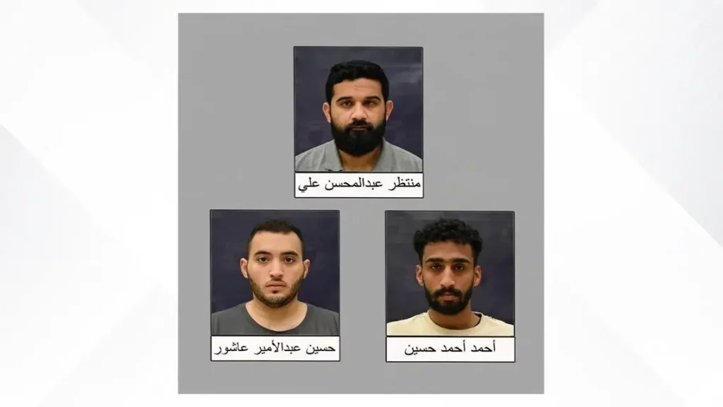 وذكرت الداخلية أسماء المقبوض عليهم هم: أحمد أحمد حسين مدن (24 عامًا)، حسن عبدالأمير عاشور (22 عامًا)، ومنتظر عبدالمحسن علي مدن (29 عامًا).