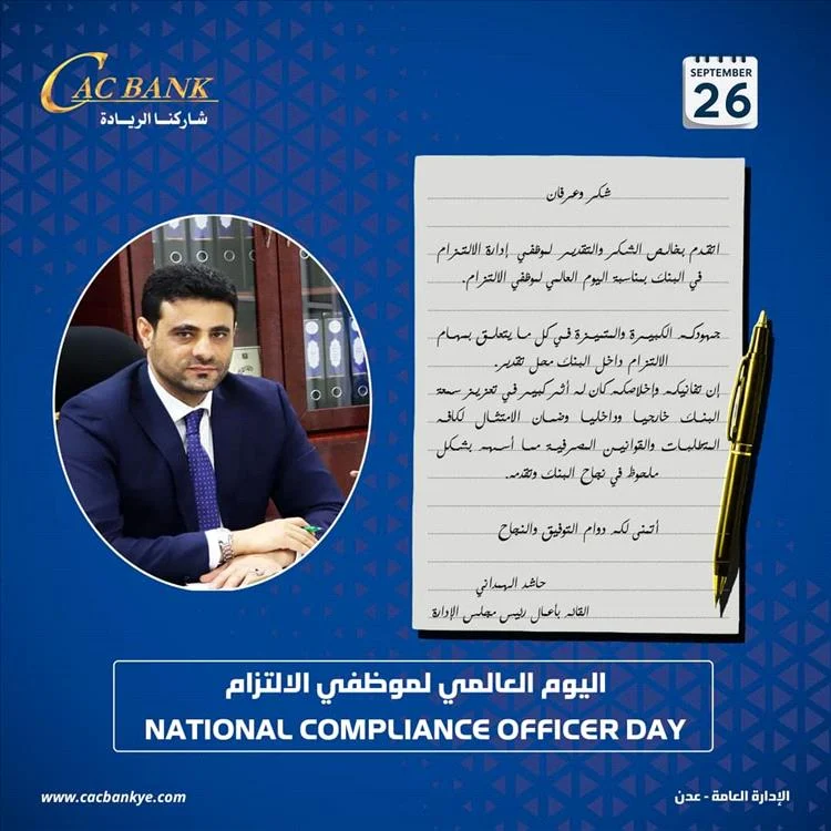رئيس «كاك بنك» يهنئ موظفي ادارة الالتزام بيومهم العالمي