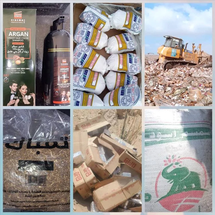 هيئة المواصفات والمقاييس ترفض وتتلف دجاج مجمد فاسد ومستحضرات تجميل ومنتجات اخرى مخالفة في عدن والوديعة وشحن