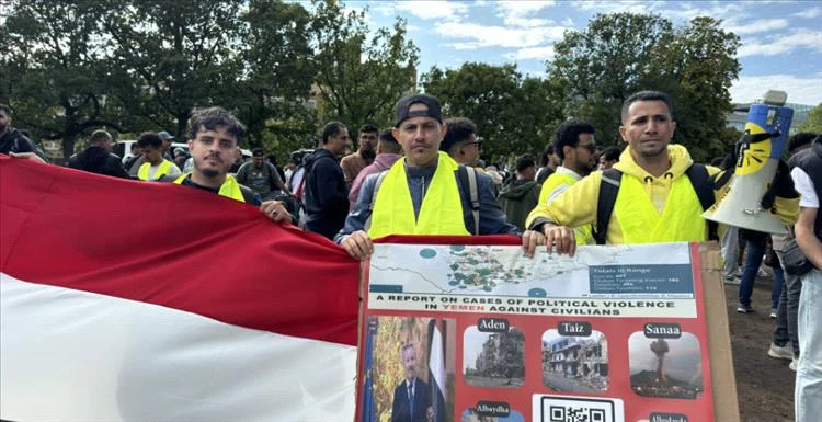 تنديدًا بجرائم القتل في وطنهم.. يمنيون ينظمون وقفة احتجاجية أمام محكمة العدل الدولية