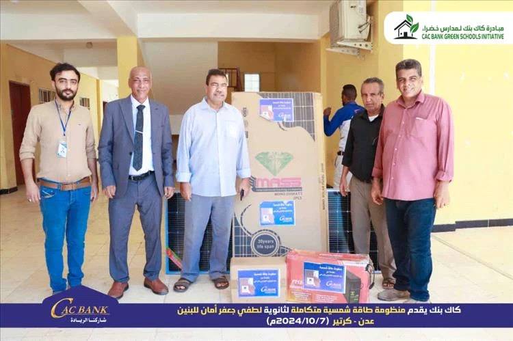 «كاك بنك» يدعم مدارس عدن بأنظمة الطاقة الشمسية