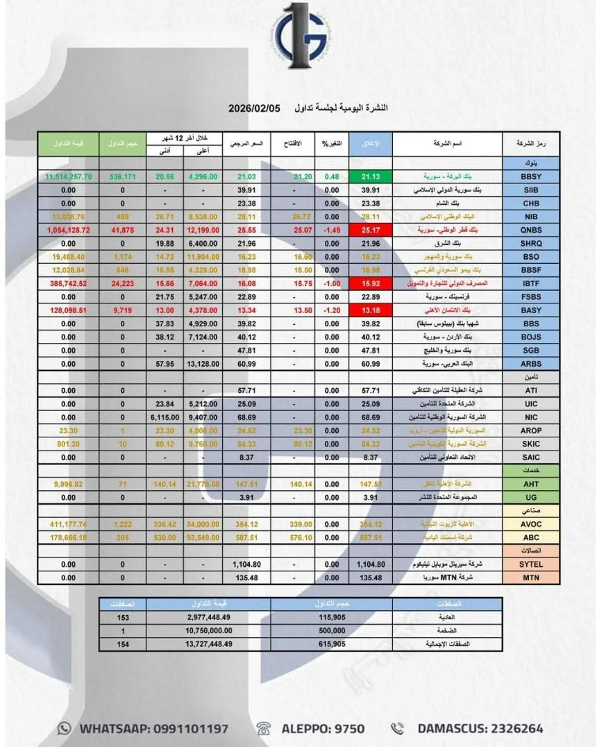 تداولات سوق دمشق تتجاوز 13.5 مليون ليرة