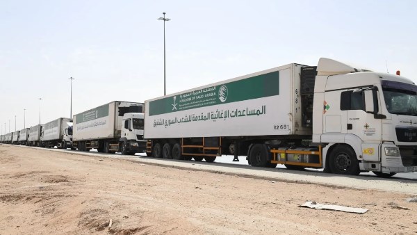 85 شاحنة إغاثية سعودية تعبر منفذ الحديثة بالاتجاه إلى سوريا