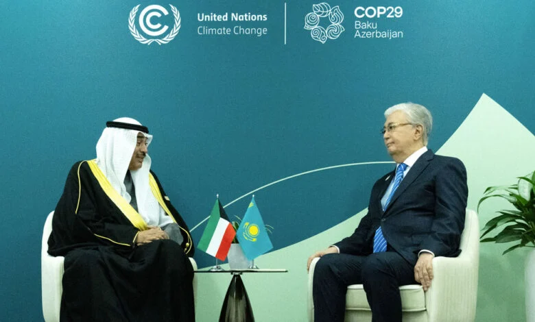 ممثل سمو أمير البلاد سمو ولي العهد يلتقي رئيس جمهورية كازاخستان خلال قمة COP29 في باكو