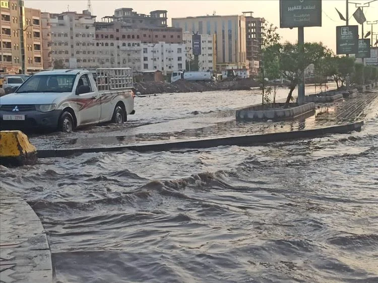 مياه الامطار تغرق شارع في خط التسعين بالمنصورة