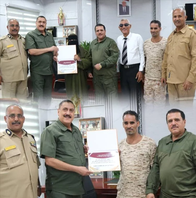 مدير أمن العاصمة عدن يكرم ضابطين أمنيين نظير إخلاصهم وتفانيهم بالعمل في الهجرة والجوازات.