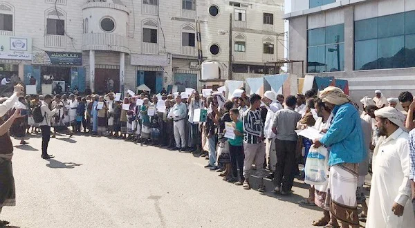 احتجاجات عارمة للموظفين النازحين في عدن بسبب تجاهل الحكومي المستمر