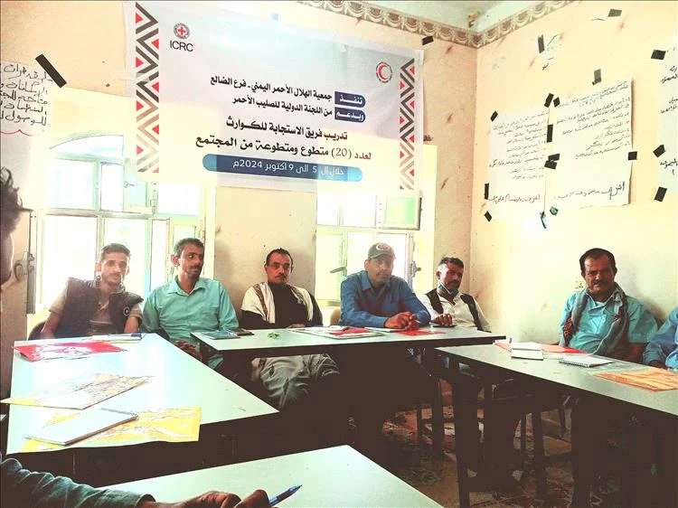 الهلال الأحمر تدشين الدورة التدريبية للفريق المجتمعي للاستجابة للكوارث بفرع الضالع