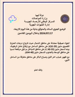 مركز الأرصاد: أجواء صيفية معتدلة مع ارتفاع عامل الرطوبة